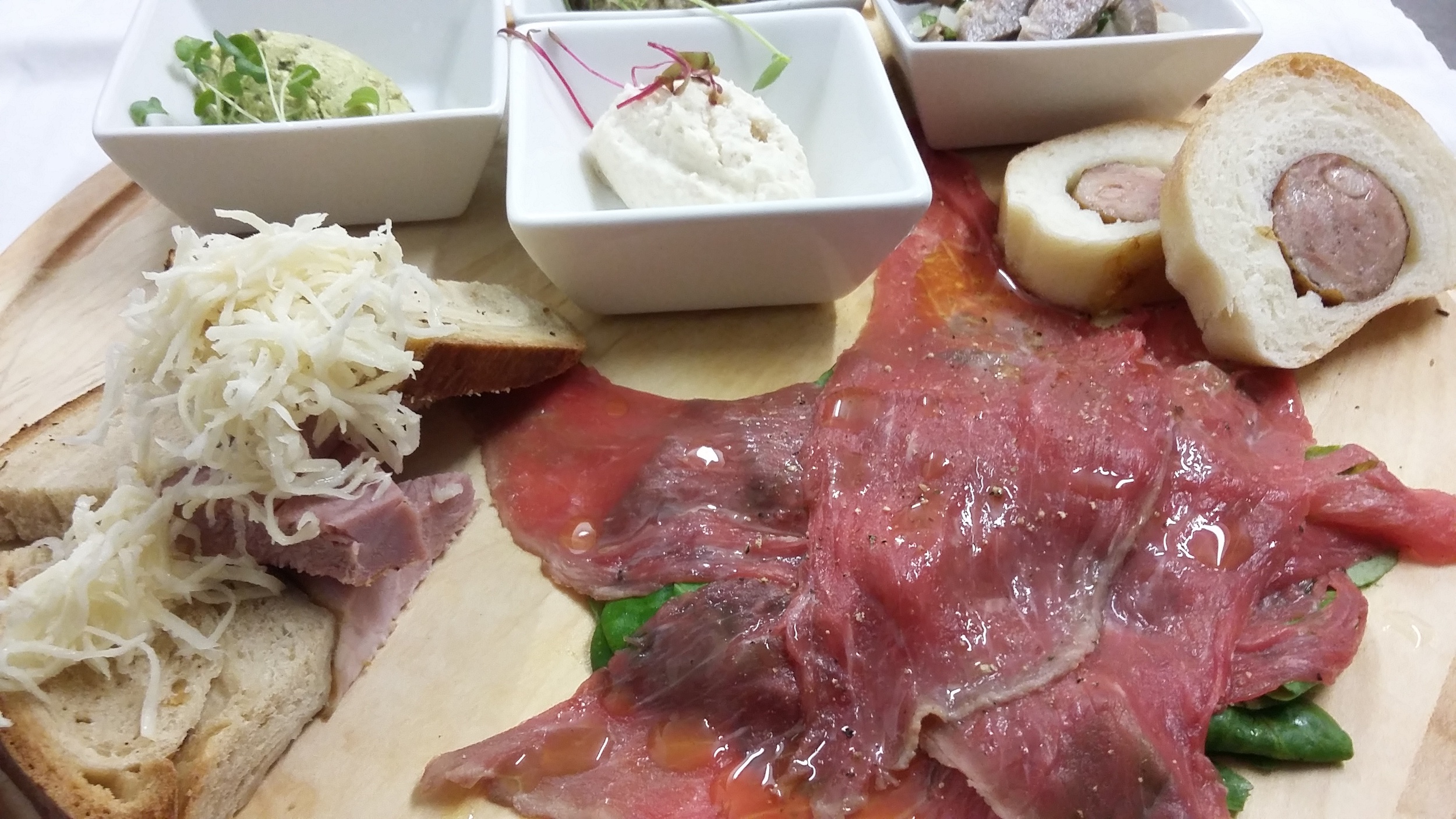 – Rahlo dimljen karpačo z brusnicami in ribanim sirom od Petelina ali
